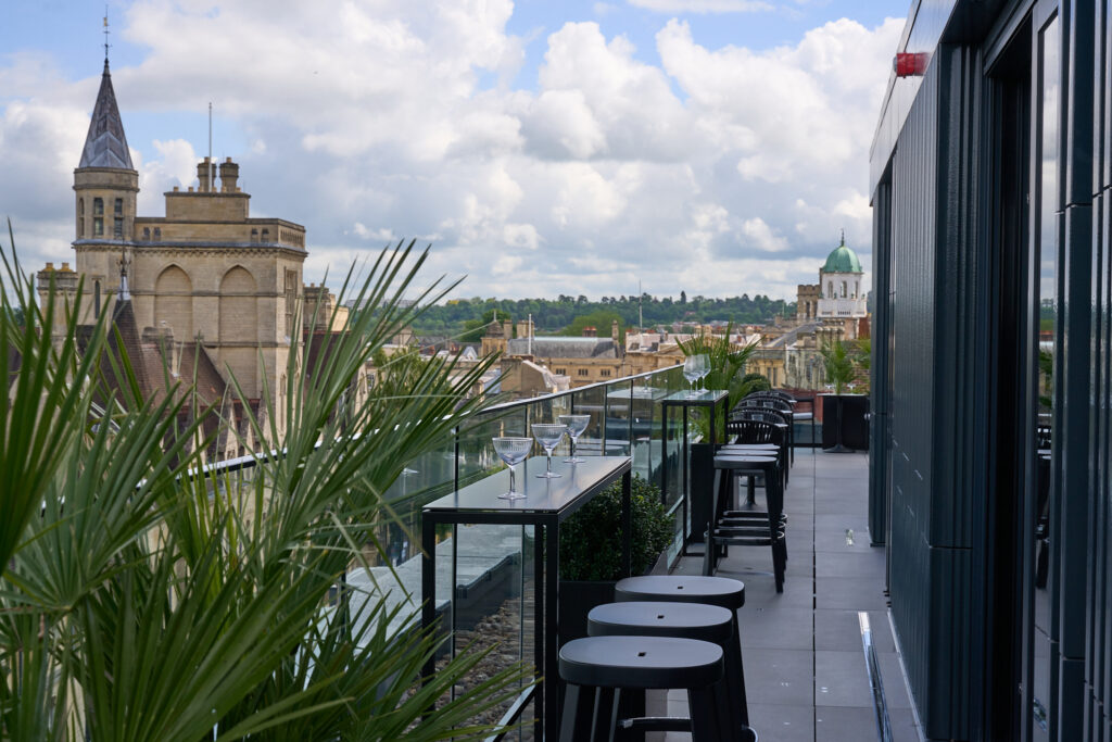 High above Broad Street, the rooftop bar and terrace offer sweeping views of Oxford’s skyline – a striking backdrop for receptions and private celebrations.